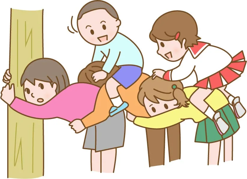 正確には, 馬役は前の人の股の間に頭を入れて, 連なります.