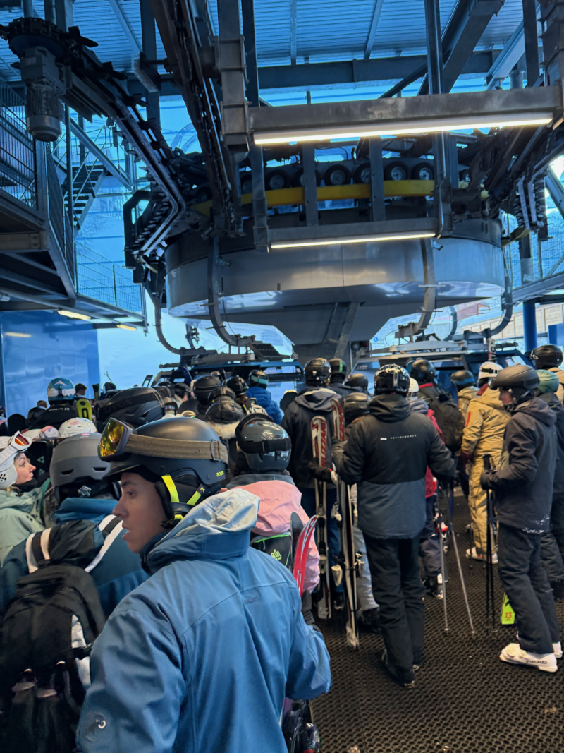 ゲートを通過すると, ほぼ待ち時間なしでゴンドラ乗り場に来ました. スイスのゴンドラやロープウェイは, 日本のスキー場とは異なり, 階段を登ることがなく乗り場に着くので, 体力的に大変助かりました.