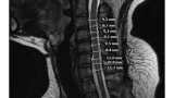 撮像されたMRIでは, 以前骨折した第2腰椎の一部が血液循環不良によって死んでしまう壊死(えし)を生じた後, 空洞を形成して, そこに体液が貯まったfluid signを認めました. さらに同じ椎体に再骨折を生じた所見も認めました. 第2腰椎椎体骨折後の再骨折と診断しました.
