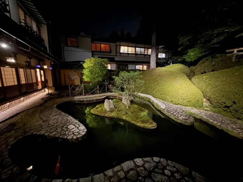 ここは宿泊者のみが見られる特別な庭. 夜風が心地よく, 時間を忘れて座っていました.