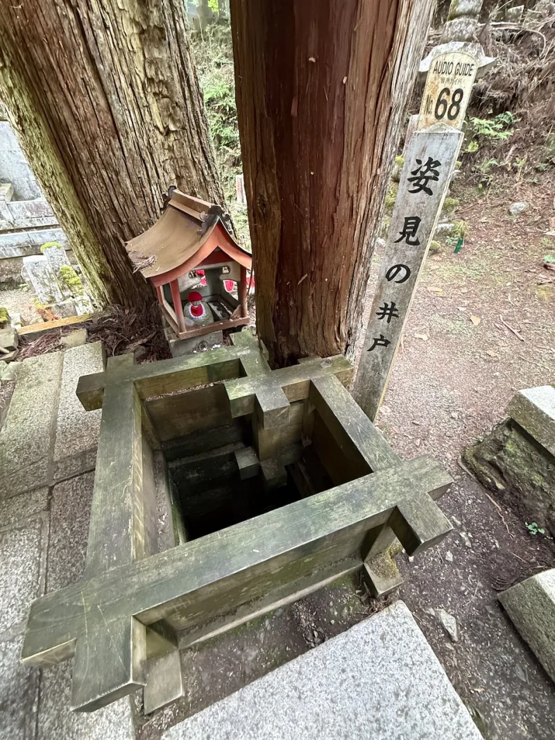 途中, 『姿見の井戸』を覗くと, 水面にしっかりと自分の姿が映り, ほっと一安心.