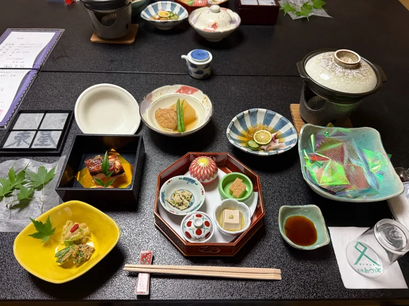 個室で供された懐石料理は, どれも丁寧な味わい.