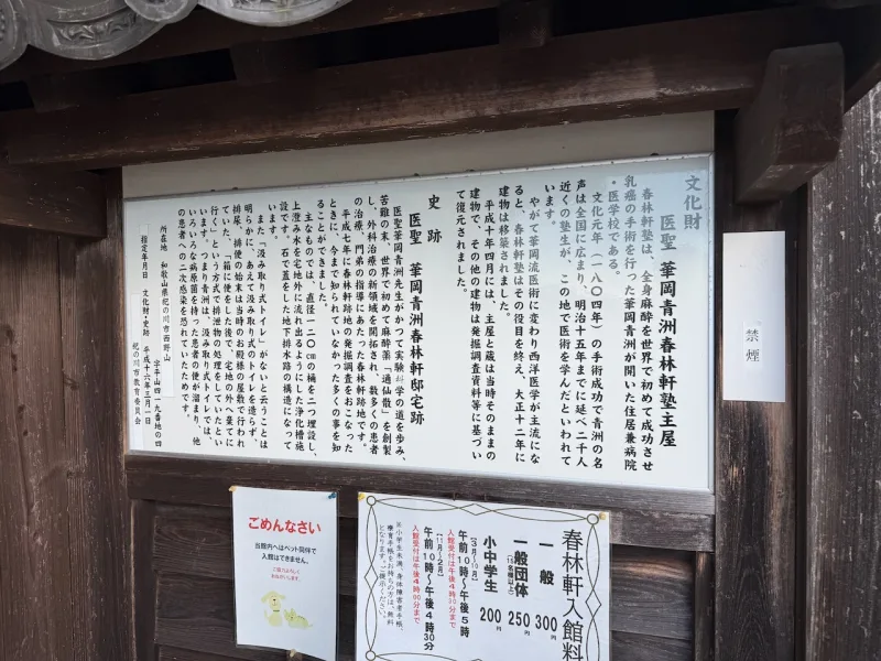 それが世界で初めて全身麻酔下手術に成功した和歌山の外科医『華岡青洲』先生が開いた医学校兼診療所『春林軒』です.