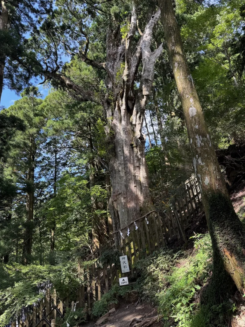 境内の奥には樹齢3,000年を超える「神代杉」.