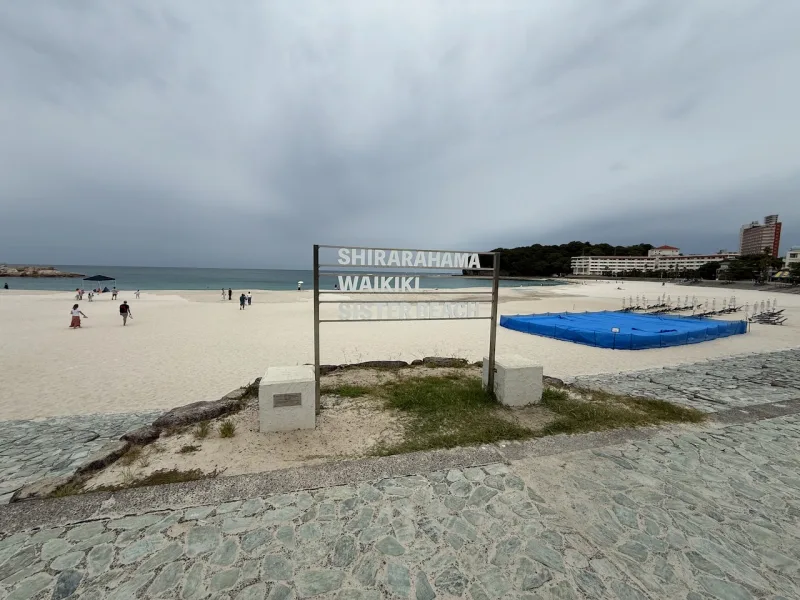 その後, 『白良浜』近くの無料駐車場にクルマを停めて, 砂浜へ.