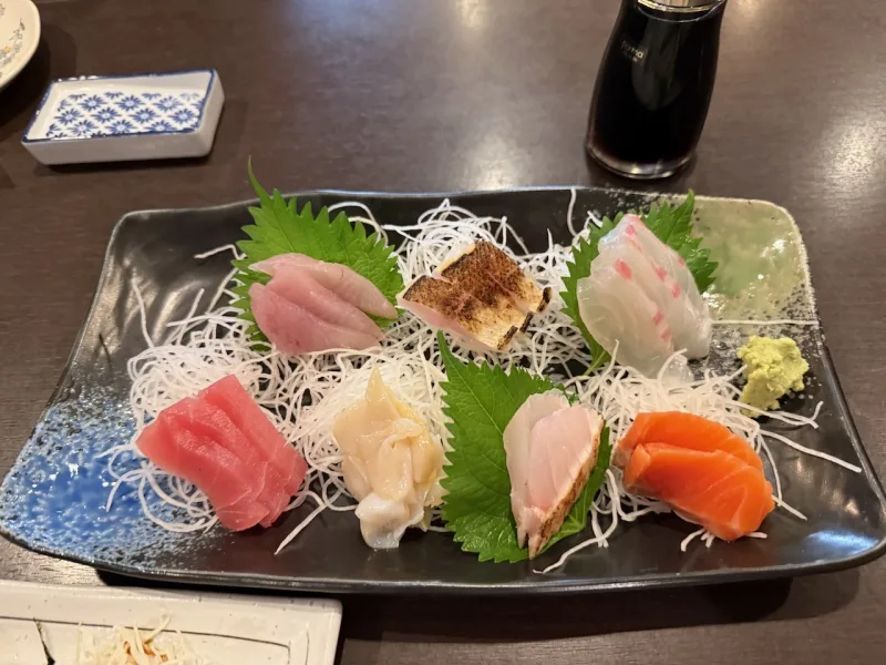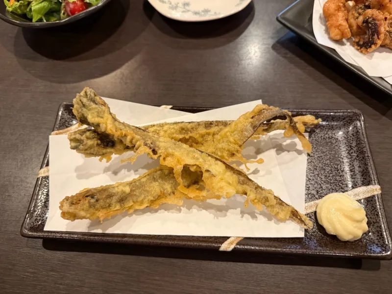 新潟の地魚七種盛り, ゲンギョの天ぷら, 前日のテレビ番組『秘密のケンミンSHOW極』でも取り上げられていた栃尾の油揚げなどの新潟グルメをいただきました. どれも新潟らしい味わいでした。