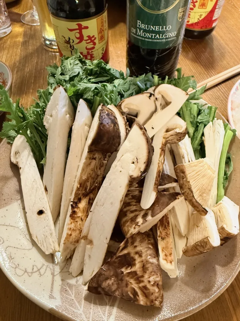 夕食は, ふるさと納税の松茸がまだ残っていたため, 思い切って松茸入りのすき焼きに.