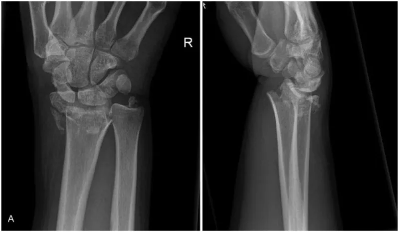 結果は, 手舟状骨骨折, 橈骨遠位端骨折, 尺骨茎状突起骨折, さらに踵骨骨折を合併. それぞれ透視下で整復し, ギプス副子固定を実施しました. 帰宅を希望されましたが, 歩行困難のため, 家族の説得もあり入院となりました.