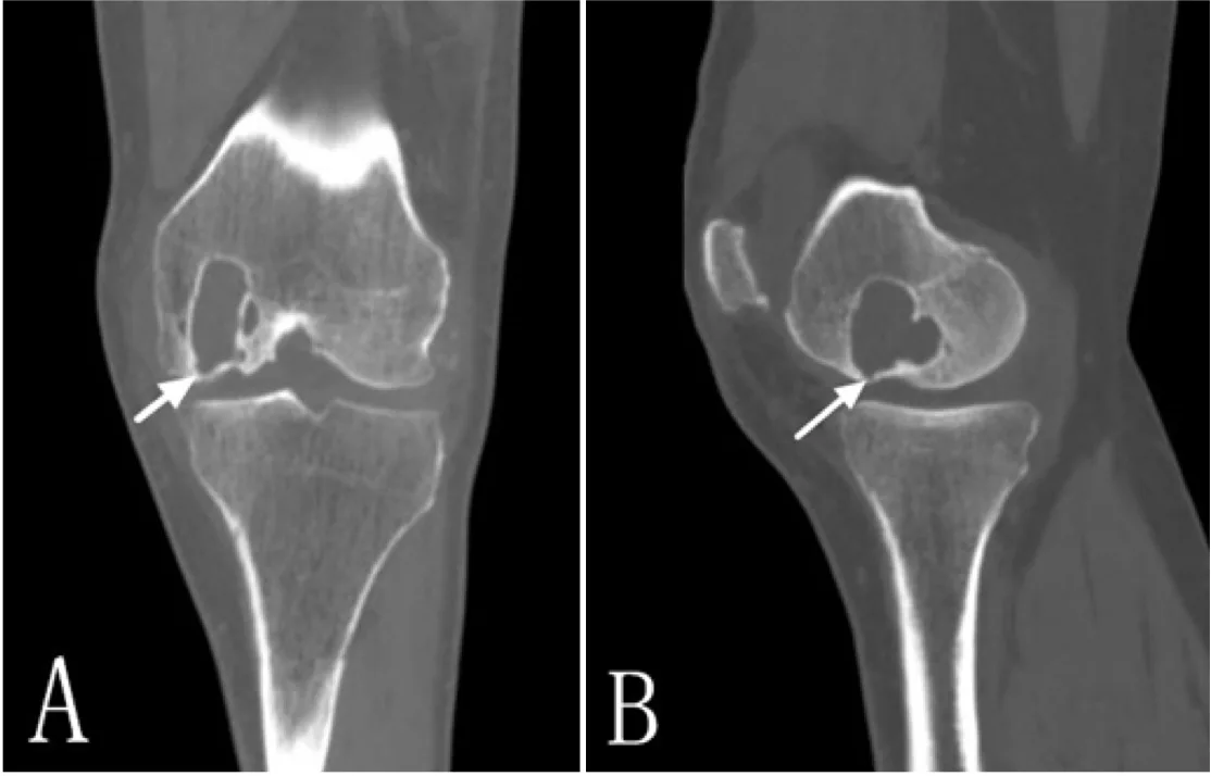 変形性膝関節症に合併した大腿骨内顆のgodeのCT.