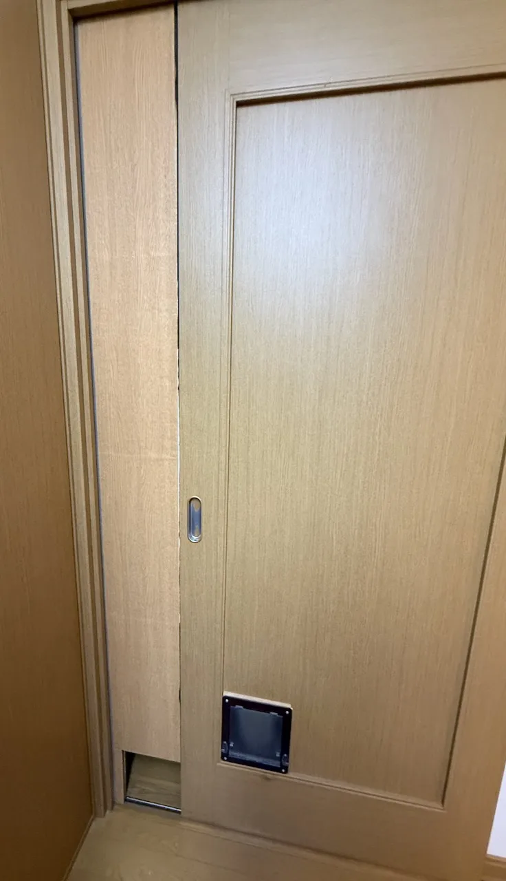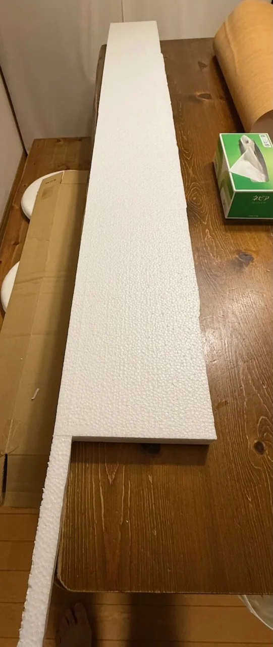 仕上げに隙間テープを縦に貼り付け, 引き戸と壁の間にスチロール板を挟み込みました. しかし, 隙間テープの接着力が弱く, すぐに剥がれてきてしまう問題が発生. スチロールにも使える両面テープを購入し, 来週中に完成予定です.