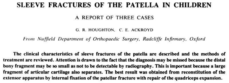 Houghton先生は, イギリスのオックスフォード大学Nuffield整形外科センターの整形外科医で, 小児の膝蓋骨sleeve骨折の3例を報告した論文です.