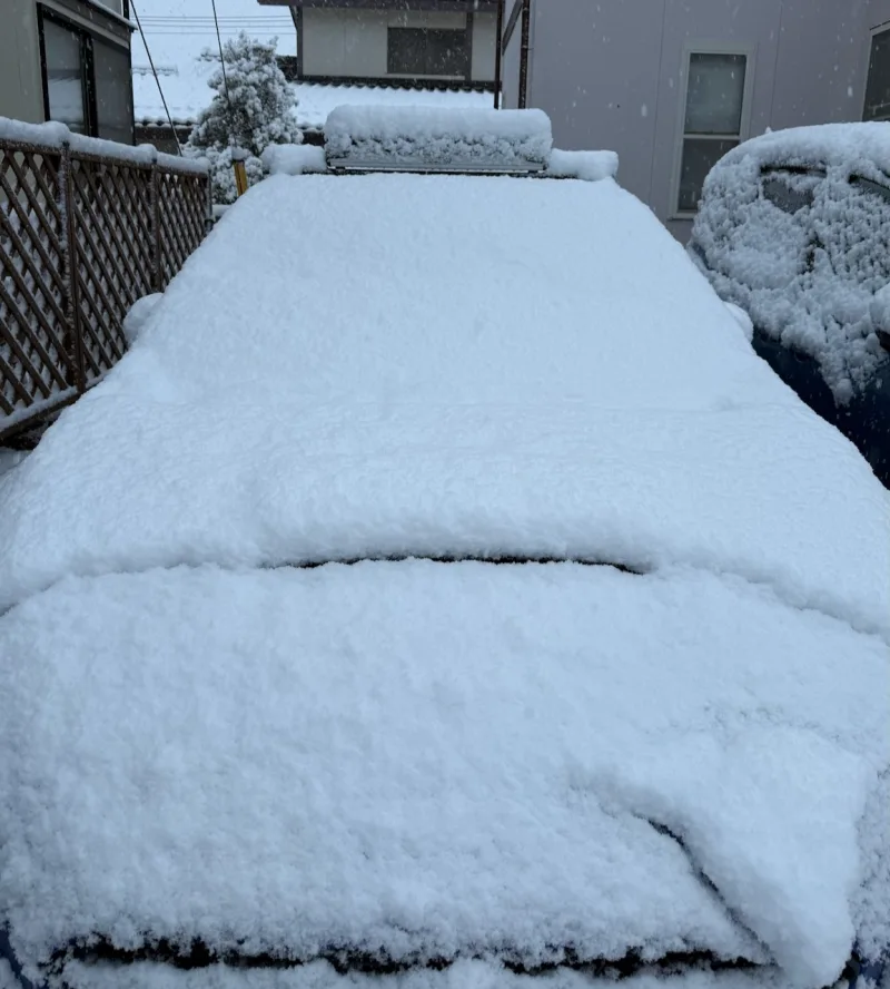 慌てて着替えて, 外に出て, クルマを見ると, 10 cm弱の積雪.
