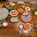 焼いたバゲットを, 昨晩のアヒージョのオイルに浸していただきました。