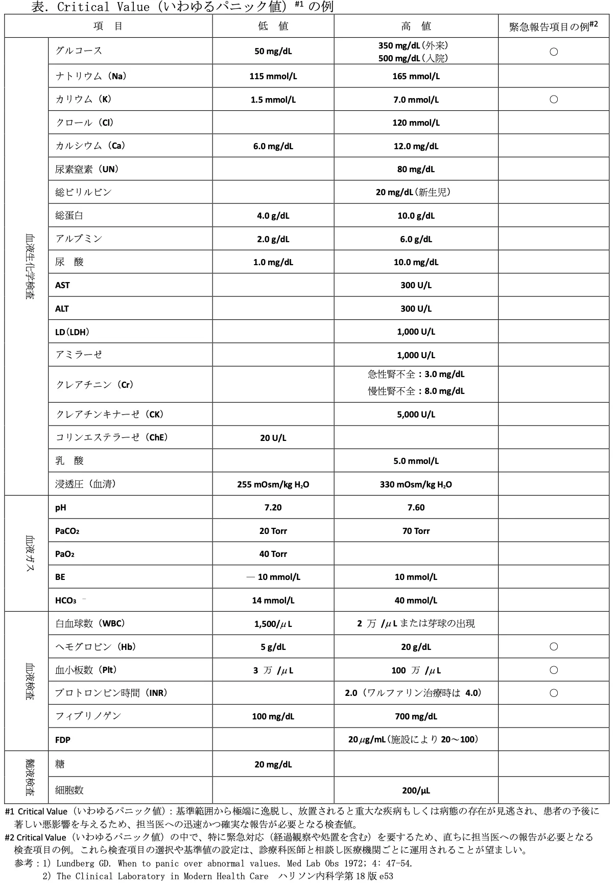 引用元;臨床検査「パニック値」運用に関する提言書 2021 年 12 月 25 日 一般社団法人 日本臨床検査医学会.