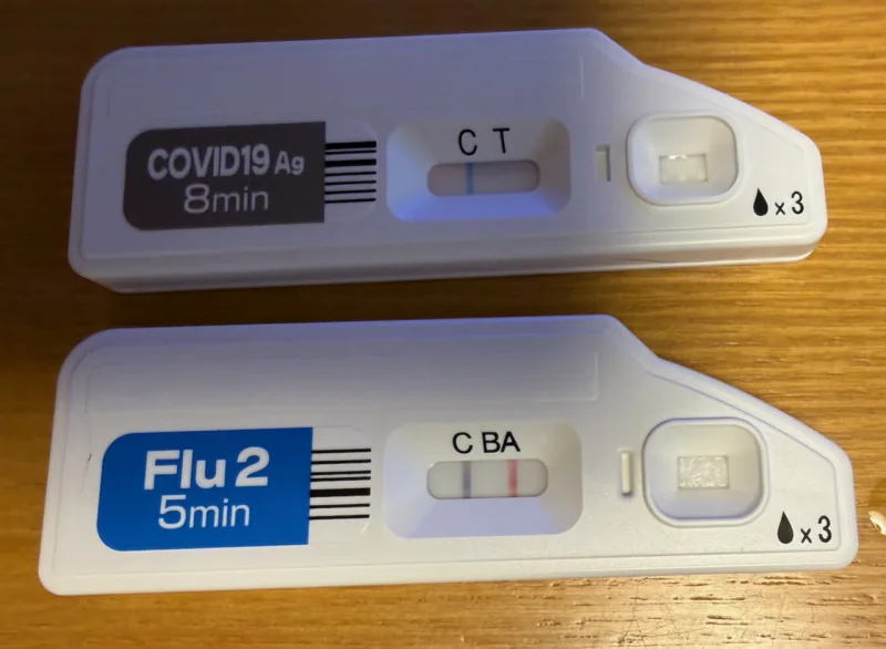 昨日の約束通り, インフルエンザと新型コロナの抗原検査を実施.