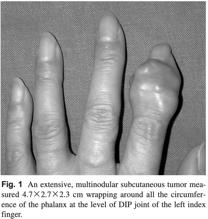 手指に生じた腱滑膜巨細胞腫の摘出術でした.