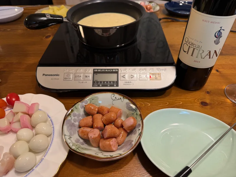 今晩は, チーズフォンデュにしました.
