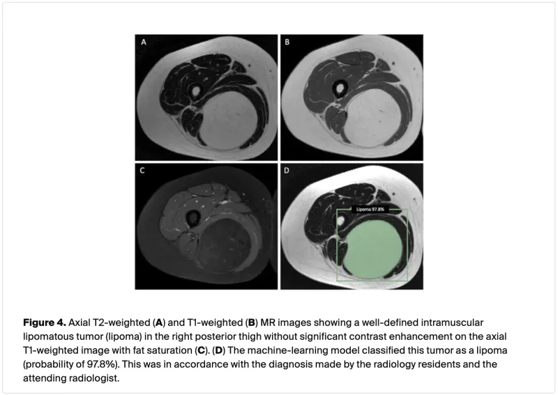 腫瘍は, 20 cm近い大きさで, 大腿部後方のハムストリング筋の筋肉の間および筋肉の中に存在.