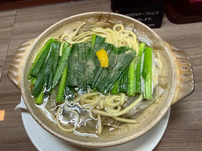 締めは, お店名物のかも吸い(そば入り).