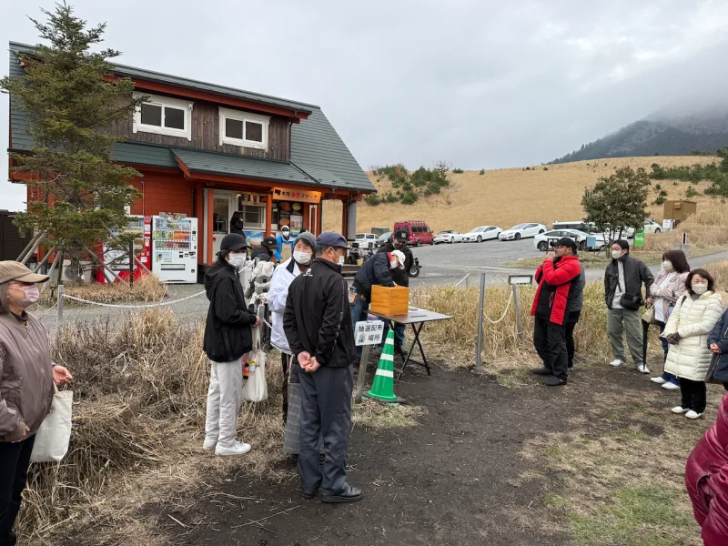 手前で, 駐車料金として, 100円を徴収されましたが, 隣接するキャンプの施設で金券として使えるとのことで, 湯布院金賞コロッケを購入していただきました.