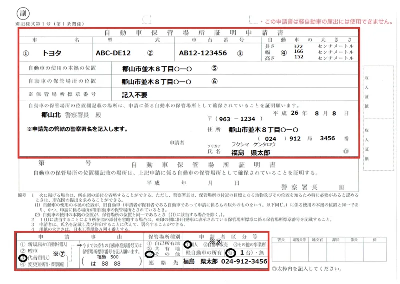車庫証明申請書