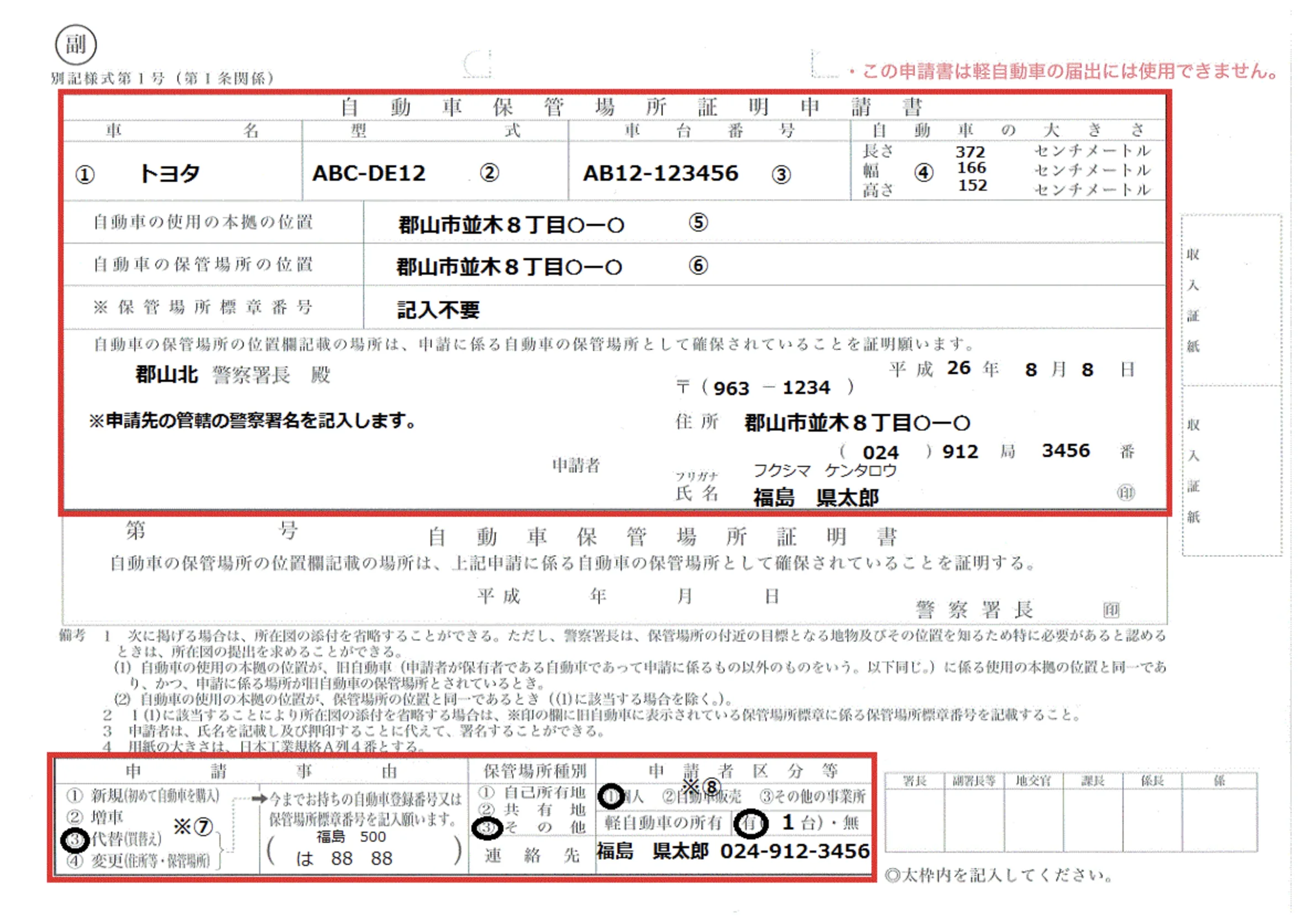 車庫証明申請書