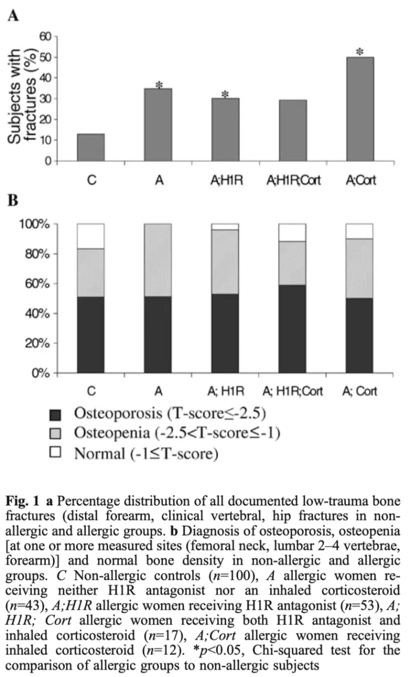 引用元:Ferencz V. Increased bone fracture prevalence in postmenopausal women suffering from pollen-allergy. Osteoporosis Int. 2006. 17.
