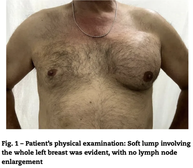 MRIの結果, 大胸筋の中に脂肪性腫瘍を認め, 異型脂肪腫様腫瘍の所見もありました.