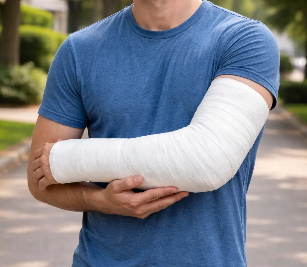 AIで生成した腕にギプスを巻いた画像.