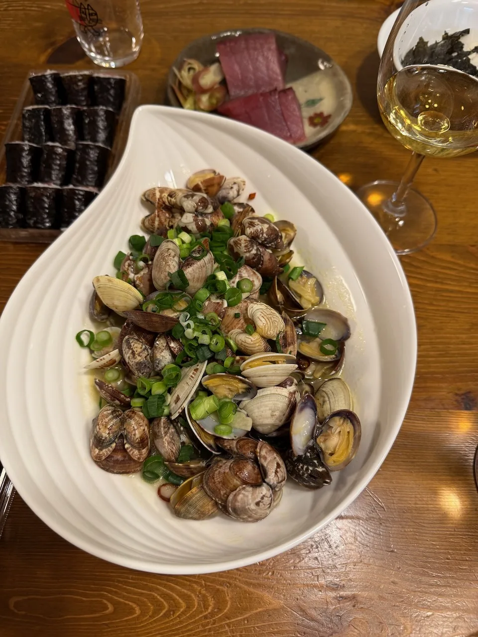 帰宅後, アサリの白ワイン蒸しを作りましたが, 調理用のワインが切れていたので, 1本口明けして使用.